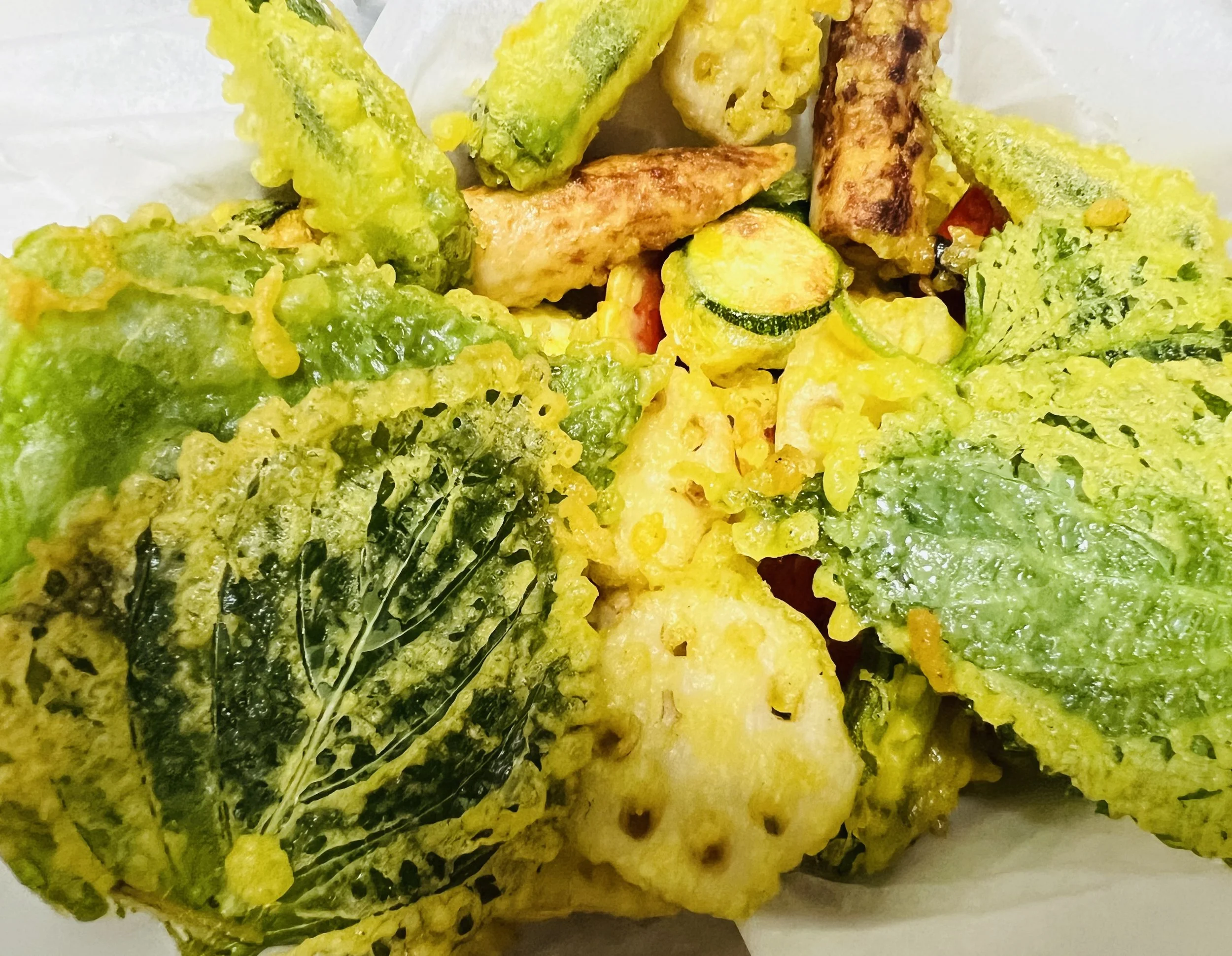 話說這盤蔬菜天婦羅,還真的非常美味。感謝自己除了經常在家做菜之外,也時不時在外吃飯,透過旅行累積做菜靈感。否則,我也不會想到把紫蘇葉,蓮藕,櫛瓜,秋葵,紅椒,竹輪做成天婦羅,用旅行中買的柚子胡椒鹽當作佐料,而不是蘿蔔泥加醬油。